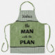 Cómico texto "El HOMBRE con el PLAN" sobre un fondo de lino verde agudo y raja de gingham verde y recortado en negro. Cada hombre tiene un "plan" diseñado en su cabeza cuando sale a la parrilla de parrilladas de lo que cocinar primero, por cuánto tiempo, etc. Es como un control. ¡Porque es el Maestro Grill! ¡Y Dios ayude a cualquier mujer que salga y le diga de manera diferente! Le encantará este delantal que sólo confirma lo que ya sabe. ES EL HOMBRE Y TIENE UN PLAN!! ¡Le encantará usarlo cuando sus amigos vengan a una barbacoa! Gran regalo para el Día del Padre o su cumpleaños.