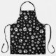 Delantal con estampado de huellas de patas en blanco y negro. El delantal negro está decorado con un patrón hecho de huellas de patas blancas dispersas de varios tamaños. Muestra tu amor por las mascotas con este divertido delantal. Es un buen regalo para una mamá de gato, una persona amante de los perros y cualquier otro amante de las mascotas.