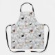 El bichón cutáneo frita perros en sudaderas y arcos con huesos de perro dispersos y huellas de pata en un fondo gris claro.