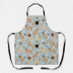 Perros adorables de Golden Retriever con abrigos oscuros y claros se sientan y se paran con huesos de perro dispersos y huellas en un fondo azul.