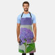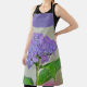 Este delantal presenta una flor de bonito de hidrangea púrpura.