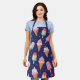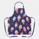 Pattern on blue background with creamy ice cream and popsicles, cherries and confetti floating around. Cute whimsical food design.