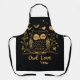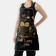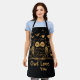 Impresión de todo sobre Apron, diseño de búho en negro y oro.