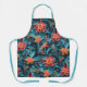 Un hermoso delantal con un patrón floral de papel sin fisuras contra un fondo azul.