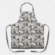 Una elegante impresión floral tropical en blanco y gris oscuro. Las correas están en un verde que se corresponde. Un estilo moderno y elegante de delantal. Correas verdes oscuras y borde inferior. Flores y hojas tropicales blancas.