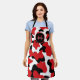Diseño, moda, audaz, monograma de impresión de vacas en forma de delantal en negro y rojo. En la parte superior hay un círculo negro con bordes rojos y blancos. Dentro del círculo, hay un monograma rojo con marcador de posición y un nombre de marcador de posición, que son PERSONALIZABLES para que pueda agregar su nombre inicial y su nombre (o texto). Cuando es hora de actualizar tu colección de manzanas, seguramente no puedes equivocarte con algunos patrones de manchas de vacas audaces... Podrá elegir entre una amplia selección de regalos a juego por Diseño Berenés.