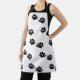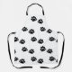 Huellas de un gato polidáctilo. Patas delanteras, derecha e izquierda, cada una con siete dedos de pie. Un conjunto de impresiones está embaldosado sobre un delantal entero.