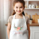 Este bonito delantal infantil de boho cuenta con un ilustracion de ciervos adornados con un ramo de flores en tonos melocotón, naranja, barro de barro y verde. Personalízalo con el nombre de su hijo en letras de estilo de impresión a mano de barro.