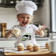 Un lindo gato de esmoquin blanco y negro durmiendo en un montón de libros con una tetera verde detrás y una taza de té delante