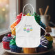 Atardecer personalizado para hornear delantal para niños. En beige, amarillo o blanco. Gracioso regalo de panadería para los niños pequeños y amantes de los quequitos. Diseño chica Girlie con texto de guión elegante. Imagen colorida con colores pastel, verde azul rosa, etc. Divertida idea de fiesta de cumpleaños.