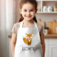 El delantal para los amantes de los animales de este niño tiene un ilustracion de zorro lindo. Personalízalo con el nombre de su hijo en letras de estilo de impresión manual en negro. ¡Hace un gran delantal para niños o chicas!