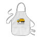 This kids' apron features an illustration of a yellow dump truck. Personalize it with your child's name in black letters.