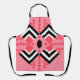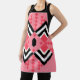 Este delantal presenta un diseño inspirado en el tejido Art Decó de formas diamantíferas en blanco, negro y rosa sobre un campo de sandía.