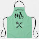 Apron de moda para el recién establecido maridito. Perfecto como regalo. Diseño con guión caligráfico "Mr.", chef jefe y electrodomésticos de cocina. Personalice con un nombre y un año establecidos.