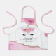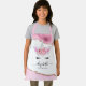 Un único delantal para cocinar con viveza con bordes de cristal rosado y purpurina dorado, una cara de unicornio adorable con flores de vientre, el nombre de los niños con un elegante tipo de letra caligráfica, y un dicho personalizado que se puede borrar.