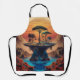 La pintura muestra un paisaje surrealista y fantástico con una isla voladora al atardecer.