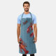Delantal de cocina largo con diseño de langostas para papá o cualquier hombre. Color azul colonial con patrón de cangrejos y langostas por todas partes. Dos langostas rojas grandes suben desde la parte inferior y entran desde la parte superior. Una adición perfecta para la cocina de un amante de los mariscos. El texto en ángulo sobre una pincelada azul dice "Papá", pero se puede cambiar a "Mamá" o un nombre personal. Se muestra en el delantal más largo, con una versión más corta disponible.