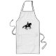 Un delantal con un ilustracion en blanco y negro de un jinete vestido de forma. El caballo y el jinete están tocando una hermosa pirueta. Un elegante movimiento de vestimenta clásica.