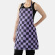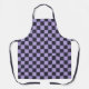 A vibrant checkered pattern with alternating black and lavender squares creates a bold, symmetrical grid. The design is balanced and visually striking.
