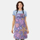 Cook, craft, or host in whimsical coastal style with this all-over print apron featuring a dreamy seashell pattern. The soft lavender background is decorated with a fantasy mix of shells, pebbles, and stars in shades of lilac, blue, pink, and beige. Personalize the apron with any name to create a fun and unique gift or a special accent for your own kitchen.