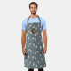 Este encantador delantal con temática Parson / Jack Russell Terriers cuenta con 13 JRTs ilustrados / PRTs con varias marcas marrón y negro de cabeza y cuerpo más 13 pelotas de tenis dispersas al azar dispuestas en un patrón de gota sobre un fondo azul de pizarra de personalizable - cada uno de los perros está de pie con un adorable inclinación de cabeza, dispuesto a lanzar una de las bolas - personalizado con monograma personalizado - Jack Russell Terriers pelotas de tenis © katz_d_zynes 2020