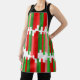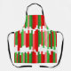Este delantal tiene un patrón Navidad de líneas en rojo y verde en diferentes longitudes.