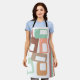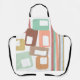 Este delantal tiene un diseño moderno de mediados de siglo de líneas y rectángulos en tonos retro de rojo, amarillo, naranja, azul, verde, marrón y rosa.