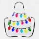 Este delantal tiene un diseño Navidad de tres cuerdas de luces de Navidades anticuadas.