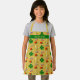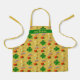 El delantal del niño con un patrón afortunado de herraduras, tréboles de cuatro hojas y arcos con ollas de oro. Perfecto para la familia irlandesa y para los niños que les encanta hornear. El delantal es de color dorado con un patrón general y una franja verde para el nombre de los niños.
