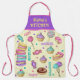 This whimsical and colorful apron will bring a smile to Mom's face and make her excited to get into the kitchen and start baking! The apron is a pretty lemon yellow and the bib at the top is purple with a pink stripe at the top and bottom. Yellow typography says "Mama's Kitchen" which you can personalize with any name or nickname you like. The yellow part of the apron has macaroons, cupcakes, lollipops, candy and donuts in turquoise, pink, yellow and purple. The names of those desserts and candies are written in matching colors and there are polka dots scattered around. The ties are in pink to match as well. PLEASE NOTE: If you are looking for this design in a small child's size, there is a separate item in my shop for kids.