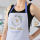 Un delantal de mamá personalizado que haría un cumpleaños perfecto, Navidades o regalo del Día de la Madre, con flores silvestres azules (flores de maíz, etc.) en acuarela, en un marco de flores de flores de oro de moda. Personaliza el titular - La cocina de mamá - con el nombre de tu madre (o Nana etc.) o sal como está. El subtítulo "Amor servido aquí desde 20xx". Personalizar el año o cambia el dicho. Una elegante y sencilla plataforma de cocina femenina para cocinar, cocinar o cualquier otro uso. Dáselo a mamá, abuela, tu hermana, esposa... o a cualquier otra mujer especial en tu vida. Azul, dorado, color verde.