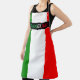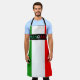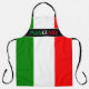 Este delantal personalizado muestra la frase "mangiare" impresa en todo el centro. Mangiare es la traducción italiana para "comer" y está impresa en los colores de la bandera de Italia. Las tres primeras letras son verdes, las dos son blancas y las tres últimas son rojas. Está impreso en el pecho sobre la bandera italiana.