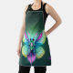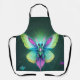 La imagen representa una criatura vibrante y fantástica que se parece a un híbrido entre una mariposa y una mantis rezadora. La criatura está parada erguida sobre un par de piernas delgadas y segmentadas, rodeada de hojas verdes exuberantes. Su cuerpo se compone de una serie de pétalos y hojas coloridos y de capas, dándole un aspecto floral. Las alas son grandes y luminosas, con gradientes de púrpura, azul y verde con un patrón llamativo, simétrico y contornos oscuros. La cabeza de la criatura es pequeña y alienígena, con ojos grandes y brillantes rosados, añadiendo un sentido de misterio y otros mundanos. Encima de la criatura, una luna celeste brillante con un diseño giratorio resplandece brillantemente en el oscuro y frondoso fondo, realzando la mágica y encantadora atmósfera de la escena.