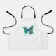 Mariposa pintada de forma artística, ficticia, verde, detallada, con plumas verdes, hermosas, de pavo real sobre fondo blanco.