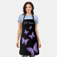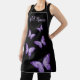 Varias mariposas púrpura sobre un fondo negro. Si ella ama el púrpura, este delantal es para ella. Añadir un nombre para personalizar.