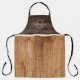 Agrega estilo clásico con el delantal marrón y beige con tono de madera rústica y monograma. Personaliza con tu información.