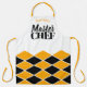 Impresión con patrones de mosaico geométrico en todo el elegante delantal de melocotón naranja, blanco y negro con un guión de tipografía MASTER CHEF negrita.++++++++ Puede personalizarlo con su nombre. +++++++ Puede ser un buen regalo para un amante de la cocina o un chef maestro - marido, amigo, prometido o empleado.