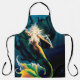 Una sirena de cabello blanco con un dragón verde oscuro juntos en el océano
