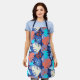 Los tonos azules clásicos y los guijarros forman el fondo de esta impresión con acentos de coral vivo, rojo hibisco, turquesa, aqua y crema. Es hora de verano todo el año. Nuestra moderna huella tropical abstracta presenta hojas monsteras y otras formas orgánicas. Este diseño se presenta en varios colores.