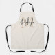 This modern apron features a monogram and name in stylish script calligraphy on a neutral beige background. It is easily customizable.