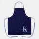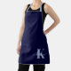 Este sencillo y elegante delantal azul marino con tu nombre en una fuente de escritura a la moda en blanco tecleado sobre tu primera inicial en un moderno tipo de letra de tope en azul claro es perfecto para cuando cocinas, entretenidas, barbacoas. Es de diseño y a la vez muy clásico.