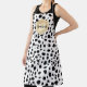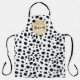 Patrón de manchas dálmatas con una etiqueta de Relieve metalizado de oro falsa con nombres de personalizable y plantillas de monograma. Un bonito delantal monogramado con un patrón de manchas negras y blancas y elementos dorados. Para cambiar los colores del tipo de letra y los estilos de fuente, haga clic en el botón "personalizar" y, a continuación, haga clic en el botón "personalizar más adelante".