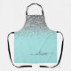 Aqua Blue - Purpurina de espuma Verde azulada y plateada Cepillado Metalizado Nombre de monograma Apron. Esto hace que el dulce perfecto cumpleaños 16, boda, ducha de novia, aniversario, ducha de bebé o fiesta de soltera sea regalo para alguien que ama el lujo glam y los estilos de moda.