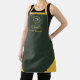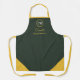 Un delantal elegante y de dos tonos de color verde forestal y dorado con un nombre, ocupación o hobby y letras monográficas. Podría ser utilizado en casa, para hacer un regalo o para los empleados en un entorno profesional como una floristería, una pastelería, etc.