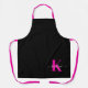 Este sencillo y elegante delantal negro con tu nombre en una fuente de escritura a la moda en blanco tecleado sobre tu primera inicial en un moderno tipo de letra de tope en rosa caliente es perfecto para cuando cocinas, entretenidas, barbacoas. Es de diseño y a la vez muy clásico.