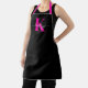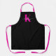 Este sencillo y elegante delantal negro con tu nombre en una fuente de escritura a la moda en blanco tecleado sobre tu primera inicial en un moderno tipo de letra de tope en rosa caliente es perfecto para cuando cocinas, entretenidas, barbacoas. Es de diseño y a la vez muy clásico.