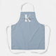 Este sencillo y elegante delantal azul polvoriento con tu primer nombre en un estilo de escritura a la moda en negro y tu primera versión inicial en un moderno tipo de letra en blanco es perfecto para cuando cocinas, entretenidas, barbacoas. Es de diseño y a la vez muy clásico.