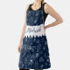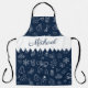 Monograma Navidad delantal - Feliz Navidad y Feliz Año Nuevo 20XX! Navidades de XMAS Personalizado Apron decorados con el patrón de símbolos de vacaciones de invierno, reno, copos de nieve, muñeco de nieve, santa, nieve, pan de jengibre, árbol de navidad, bolas de navidad, estrellas adorno decorativo en el fondo rústico de Navy Blue. Diseño gráfico de moda original. Inicio > Cocina y Comedor > Ropa de mesa y cocina > Aprones. Los Regalos Presentan La Decoración De Las Vacaciones De Invierno. Apron Design con plantilla de texto. Personalízalos añadiendo nombre.