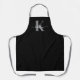 Este sencillo y elegante delantal negro con tu nombre en una fuente de escritura a la moda en blanco tecleado sobre tu primera inicial en un moderno tipo de letra de tope en gris es perfecto para cuando cocinas, entretenidas, barbacoas. Es de diseño y a la vez muy clásico.