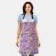 Monograma personalizado nombre floral morado trendy lindo delantal para mamá, madre, amiga, mujer. Personaliza con nombre, carta, iniciales para un regalo de cumpleaños, regalo de la madre, regalo de los navidades. Moderno delantal colorido con flores adorables, patrón multicolor, fondo rosa morado y flores pequeñas. Patrón femenino de bonito dulce para una gran cocina, jefe, amante de la comida. Idea de regalo perfecta para cumpleaños, día de la madre, navidades.